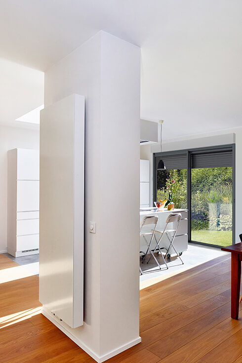 La solution de coffre de volet-roulant à débordement intérieur THERMOBLOC, est l’association d’un volet-roulant pré-réglé en usine et d’une menuiserie, le bloc-baie constitue un ensemble monobloc pour une pose en applique coté intérieur.