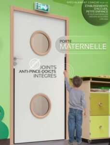 Nous complétons notre gamme de portes intérieures avec trois produits MATERNELLE pour les établissements petite enfance (crèches, garderies, écoles maternelles, groupes scolaires) :