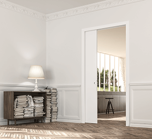 Le caisson métallique intégré à la cloison permet d’escamoter quasi intégralement la porte dans le mur. Utilisables en neuf ou en travaux de rénovation, les possibilités de fonctionnement sont nombreuses :